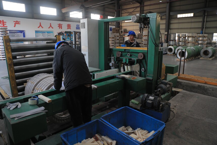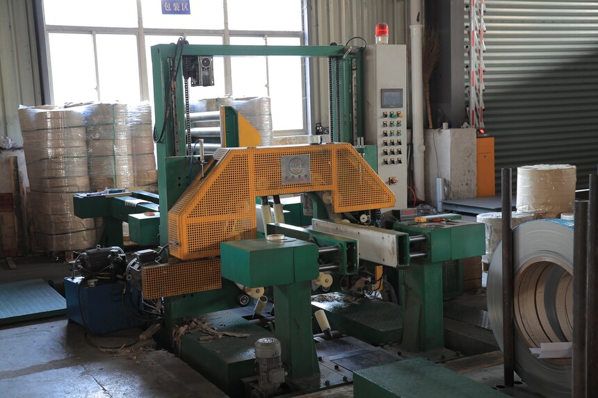 DGG400B自动包装机 打包型式:卷料 包装单卷宽度:30~400MM 原料最大宽度:1500MM 原料最大总卷重:15吨 包装钢卷内径:φ508mm ~φ610mm 包装钢卷外径:φ750mm ~φ1500mm 前送料小车载重:15吨 DGG400B包装机:3吨 翻 料 机:5吨 最大翻转外径1500MM 最大高度1100MM (含托盘) 翻转角度:90° 输 送 辊 道:5吨 最大包装速度:4500MM/min 包装材料最大外径:φ600mm 包装材料内径:φ54mm 包装材料宽度:90mm